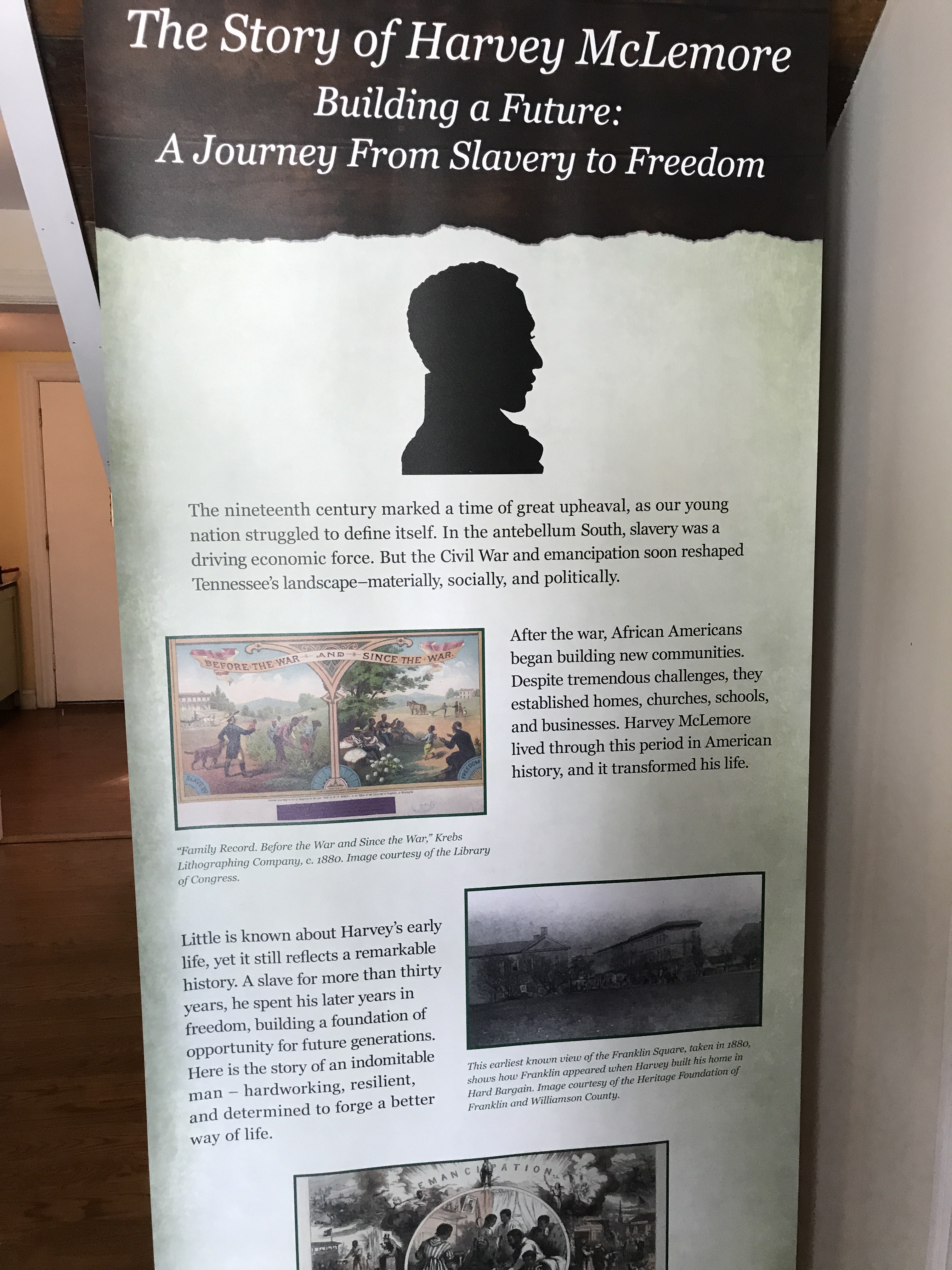 New exhibits prepared with the support of the Tennessee Civil War National Heritage Area tell Harvey’s amazing journey from slavery to freedom along with the impact his family had on Franklin for generations.